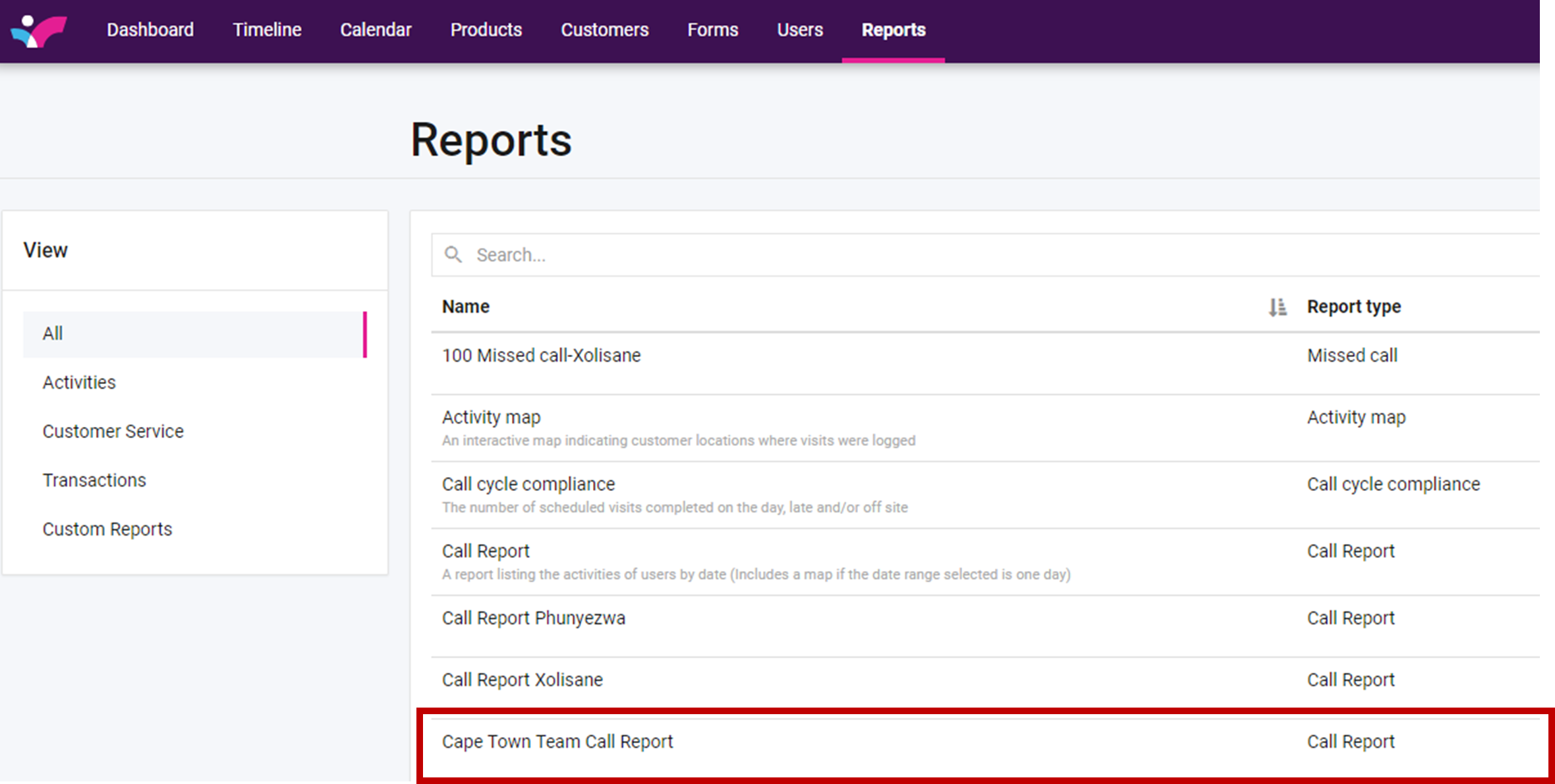Step 1: Select the Reports tab from the top bar and the report you would like to view.