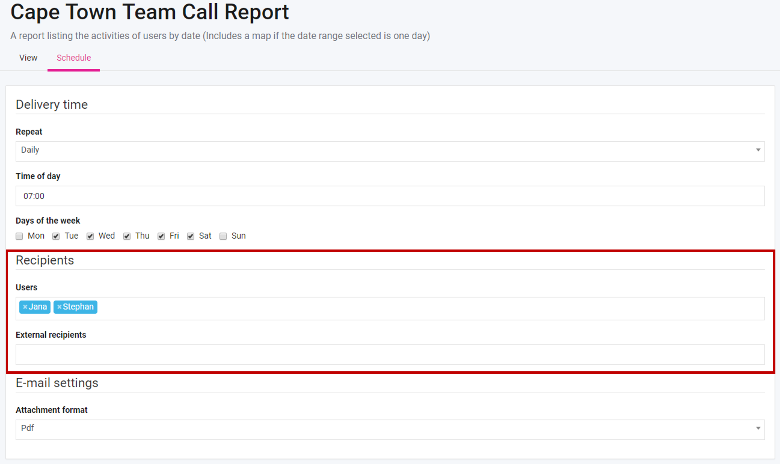Step 4: Lastly, if this is a report that gets emailed, you should also update the recipients on the schedule, by adding/removing the required users.