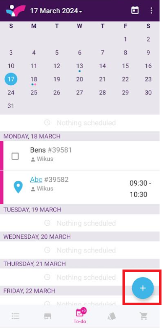 To add a task, open the To-do on the bottom navigation, and select the blue + and select whether you want to add a task or a scheduled visit: