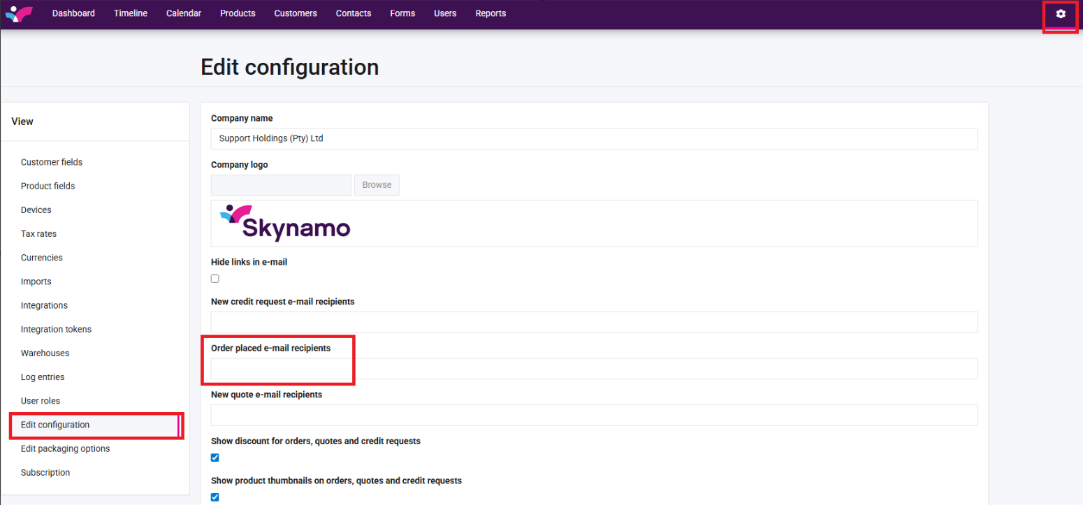 Global email recipients are the highest-level configuration. This is ideal if your business has a central operations or admin team that needs visibility of all order‑related communication.