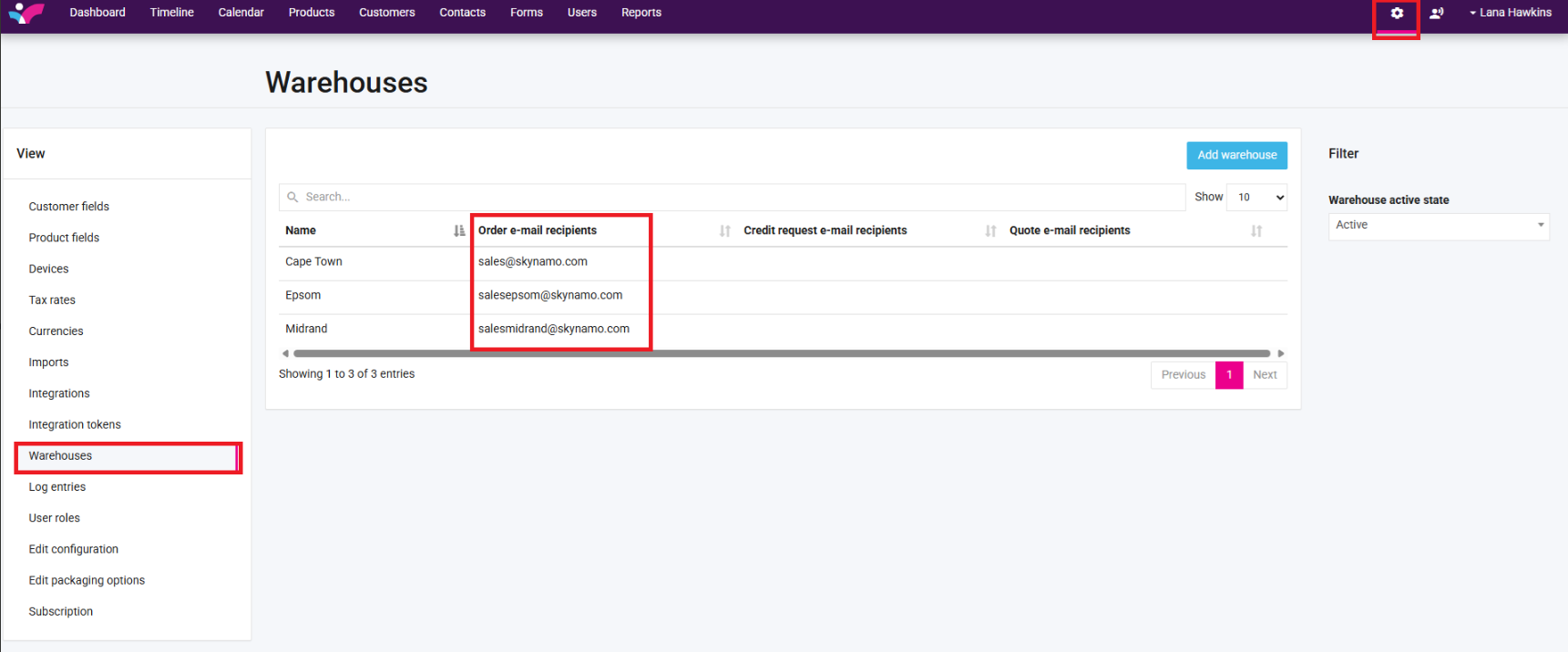 If your workflow involves multiple warehouses, depots, or regional hubs, you may not want every location to receive every order email. Warehouse‑level recipient settings allow you to specify which warehouse receives which order notifications.
