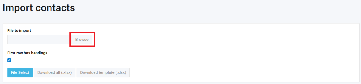 4. Click on Browse and select the Contacts file you have updated: