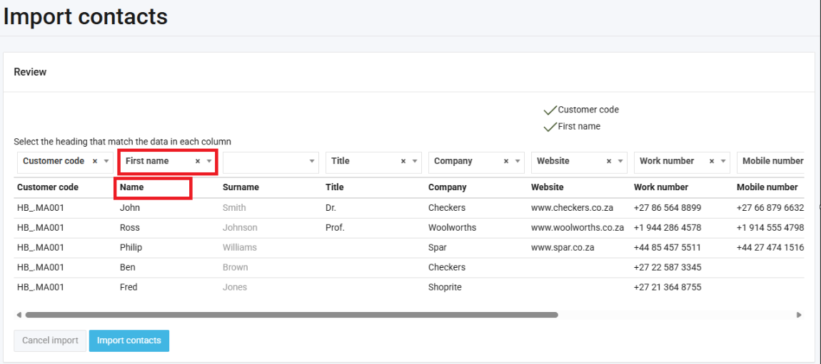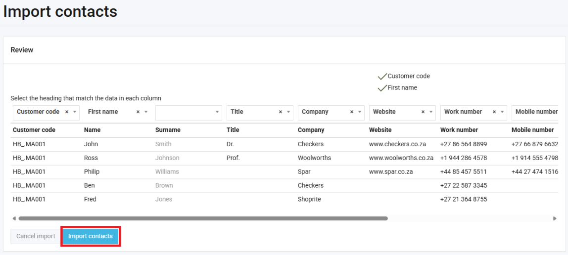 7. Click Import contacts: