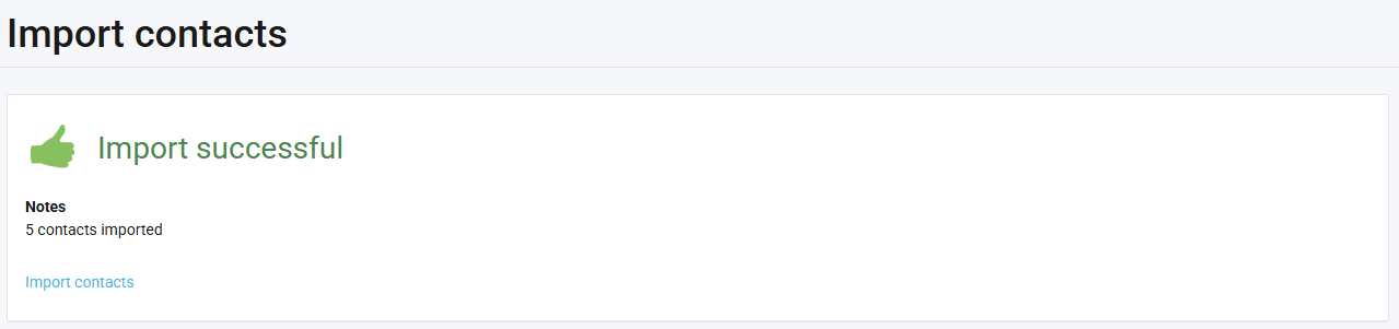 You will then receive a message to indicate whether your import was successful or not: