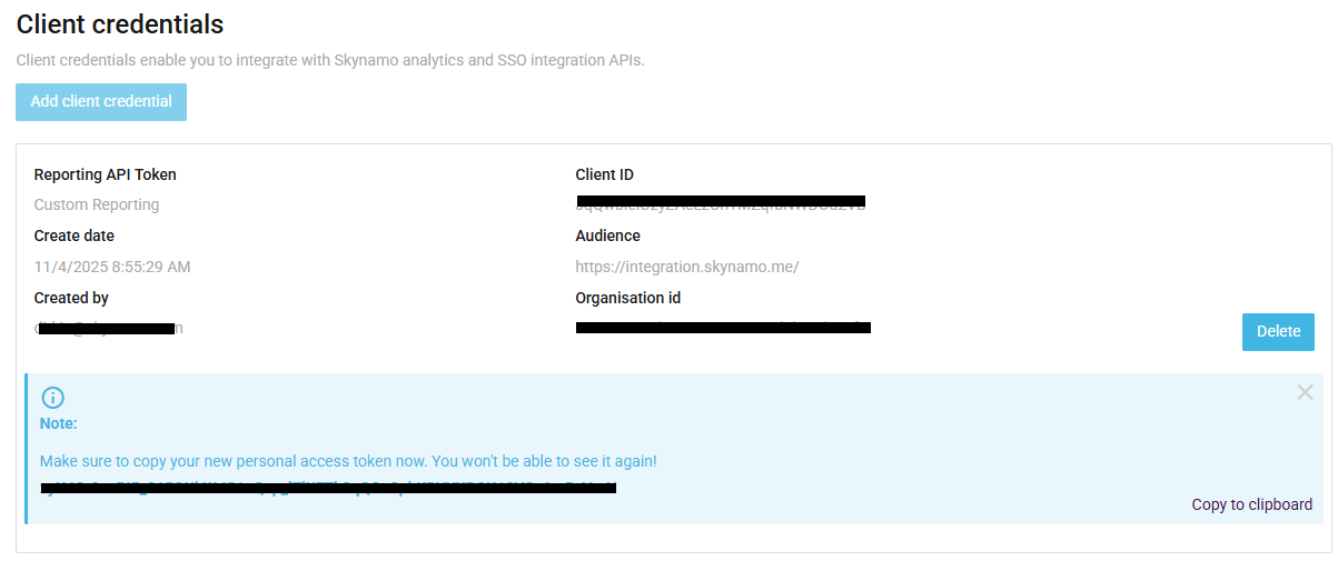 Click on Add client credential: