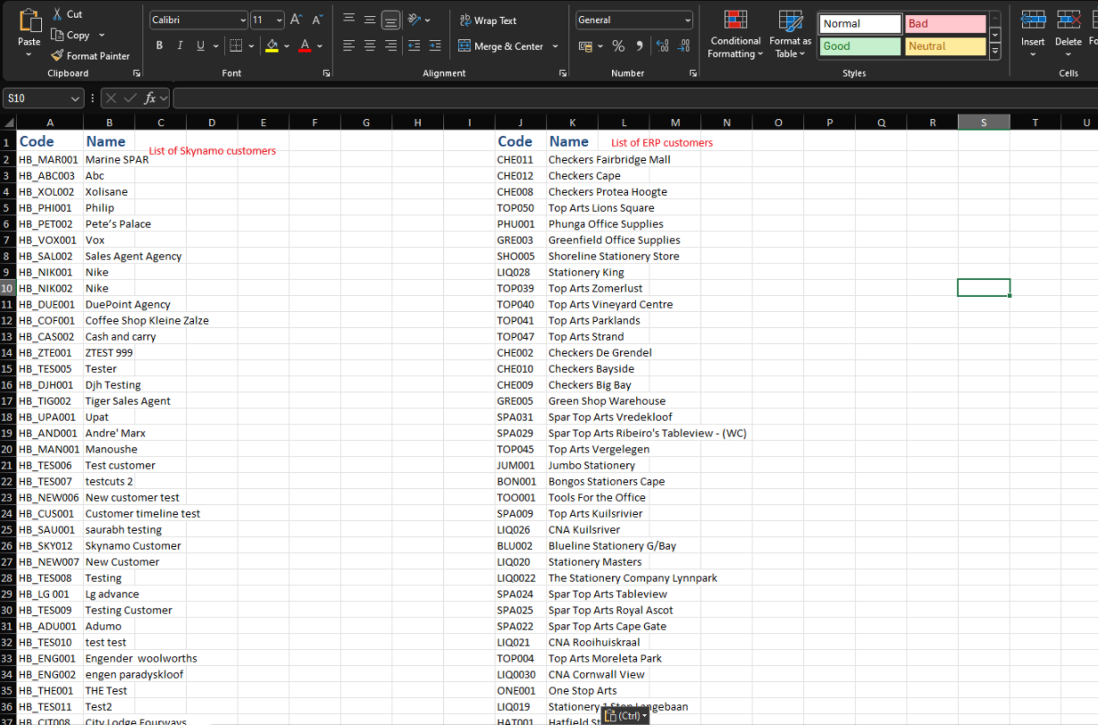 Use Excel's Fuzzy Lookup to identify and merge duplicate customers from Skynamo and ERP systems.