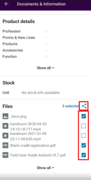 You can either click on a file to open it or you can select the tick boxes and share the files: