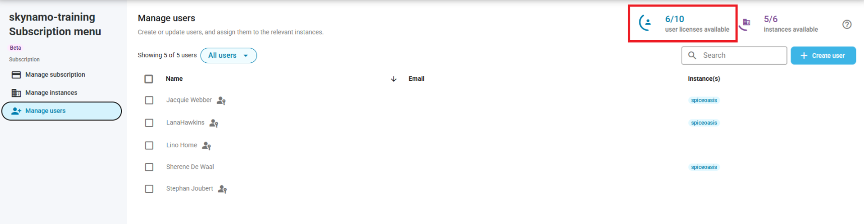 - You will need an available user license, in order to add a new user. You can check your user license count in the top-right corner: