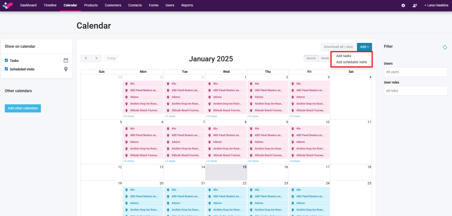 How to add a task/scheduled visit - Web