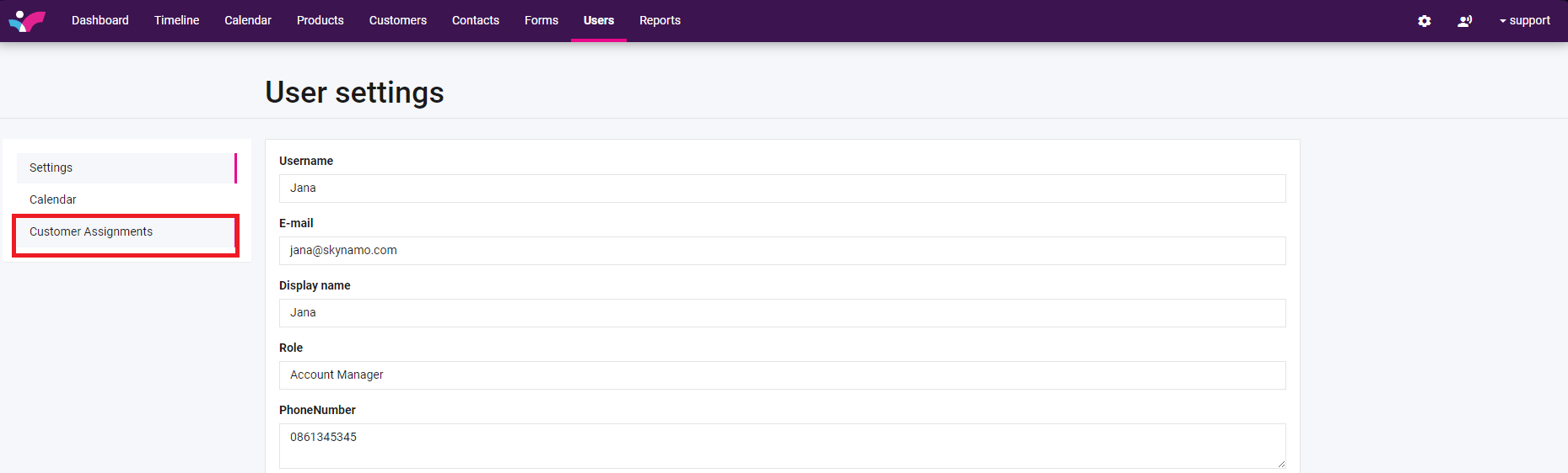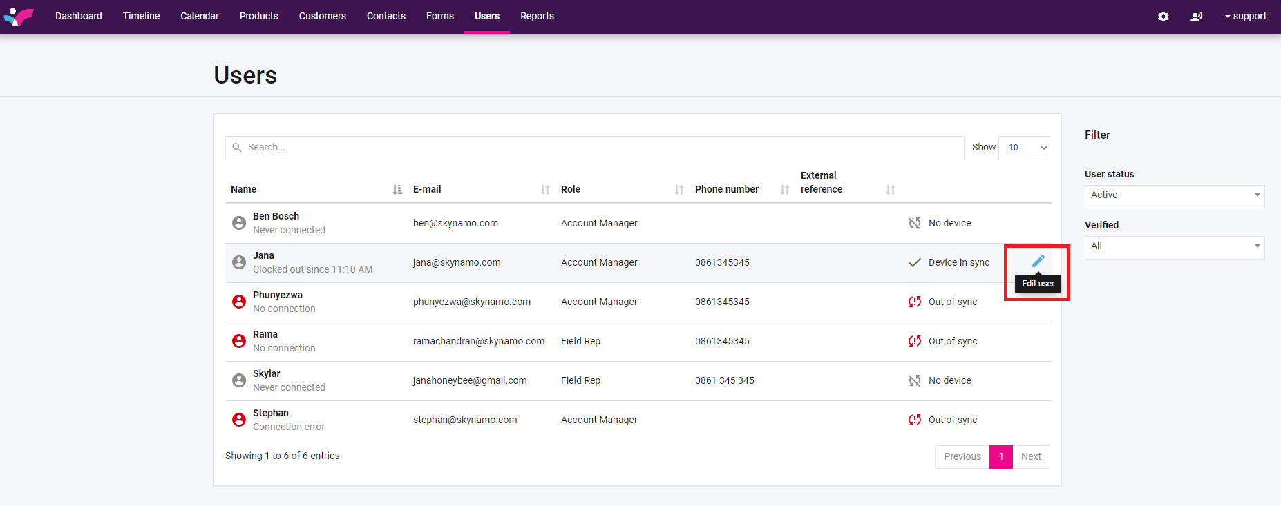 Start by navigating to your Users page, and select the option to the right to Edit user. You will have this option if you have been given the permission to do so. The user you are editing is the user the customers will be assigned to.