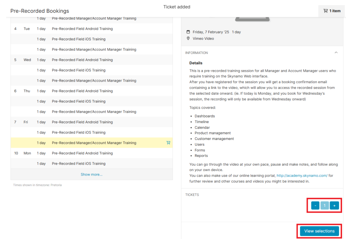 How to book a pre-recorded training session