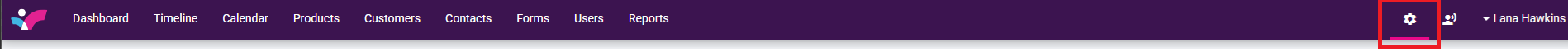 1. On the Skynamo web interface, click on the Settings icon in the top-right corner of your screen: