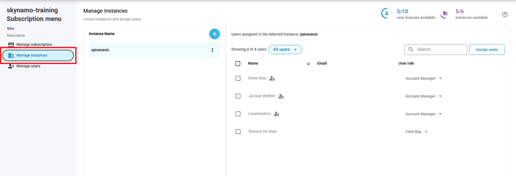 - Select the instance that you want the user to manage: