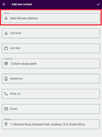 6. Click the tick icon in the top-right corner to save the contact: