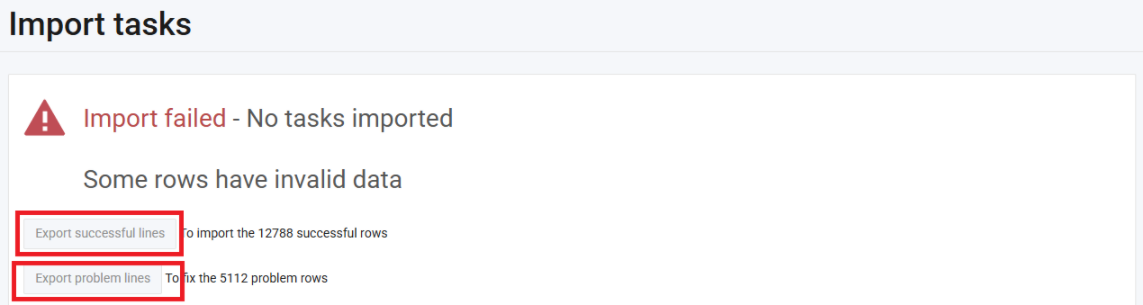 1. If you get an import failure message such as the below, start by downloading both your successful rows and your problem rows: