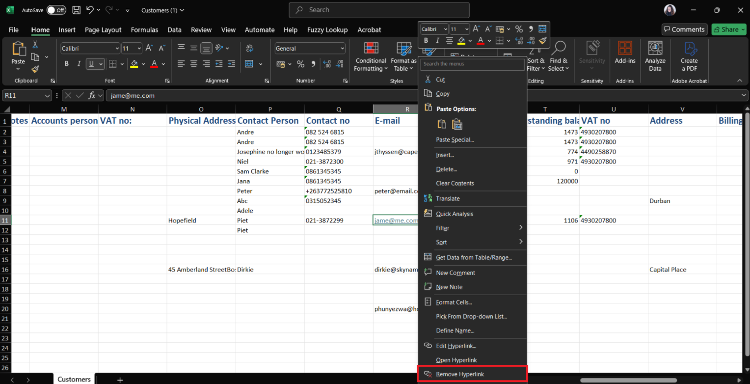 - File cannot contain hyperlink: This means you have an email address or a field in your file that is hyperlinked.