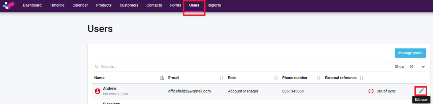 Go to the Users tab. Hover over the user's name with your cursor and click on the blue pencil icon:
