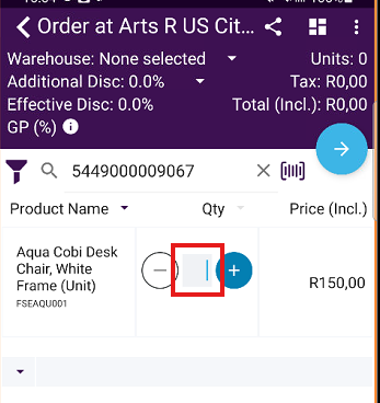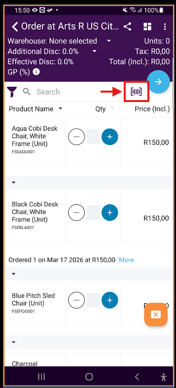 1. Open and order/credit request or quote and click on the barcode button seen in the below screenshot