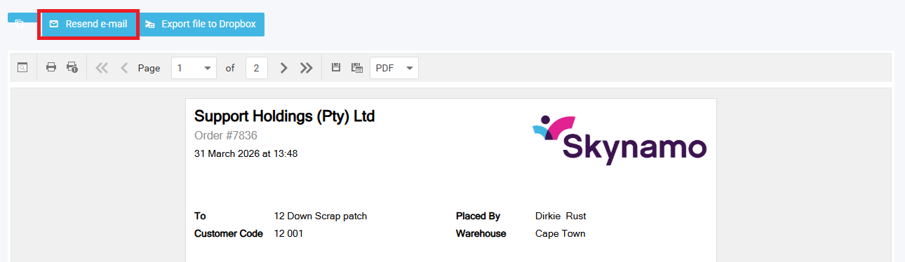 To resend orders: