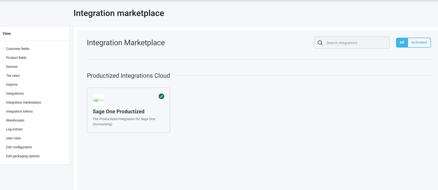 2. Click on Integration marketplace in the left-hand View tab