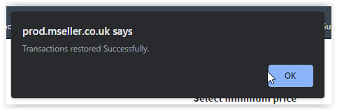 You should then receive a second prompt that will appear to confirm that the transactions have been restored.