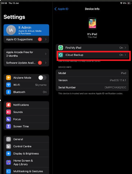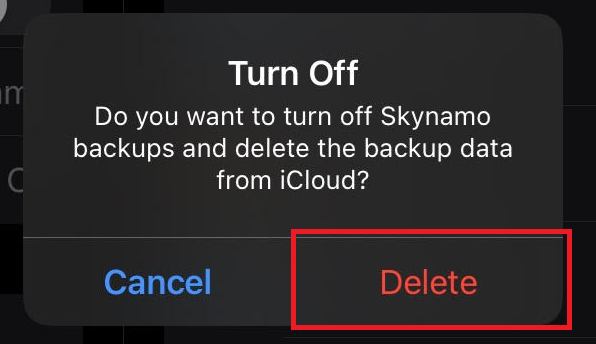 - Switch your iCloud backup off for Skynamo: